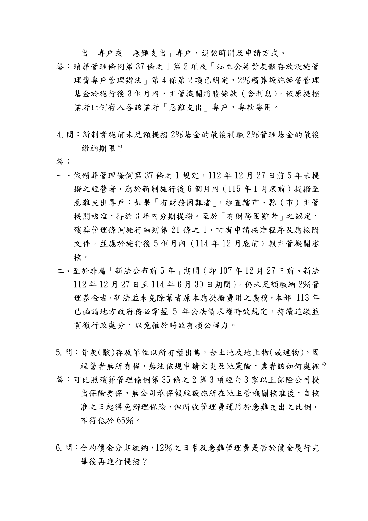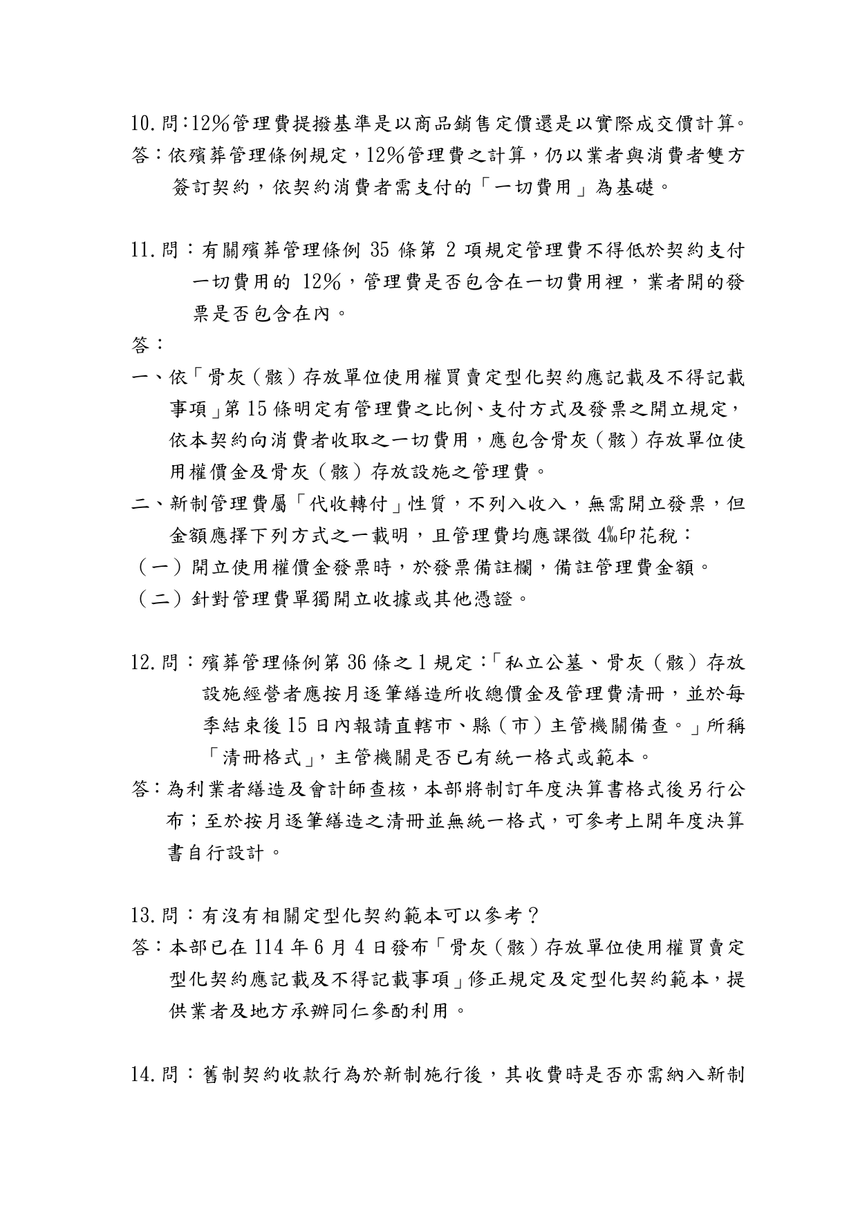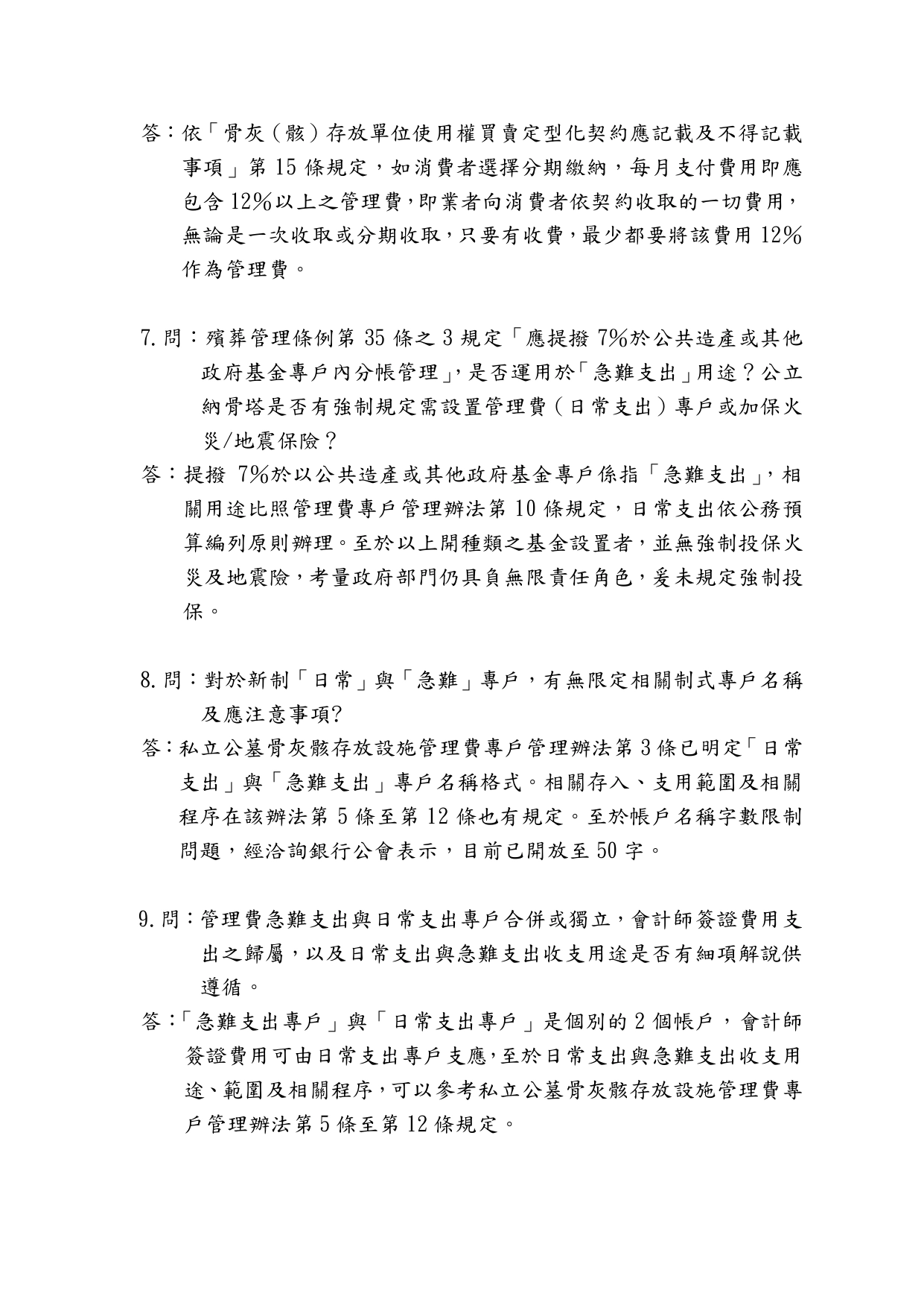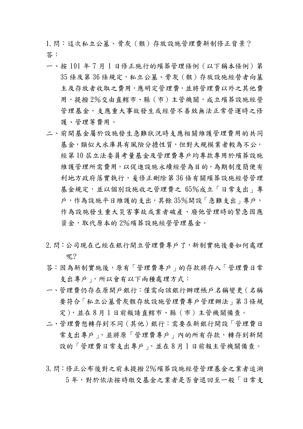 私立公墓、骨灰(骸)存放設施管理費新制QA
