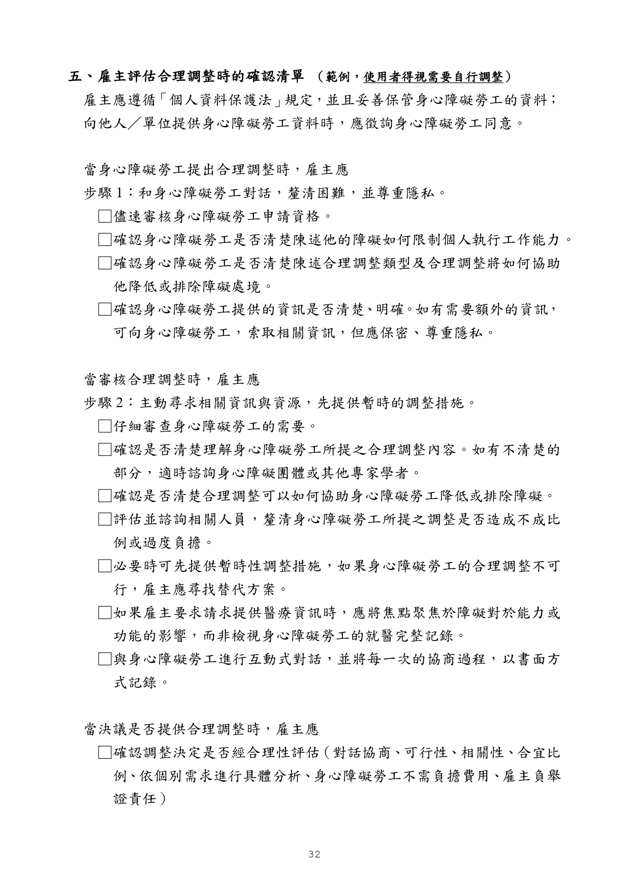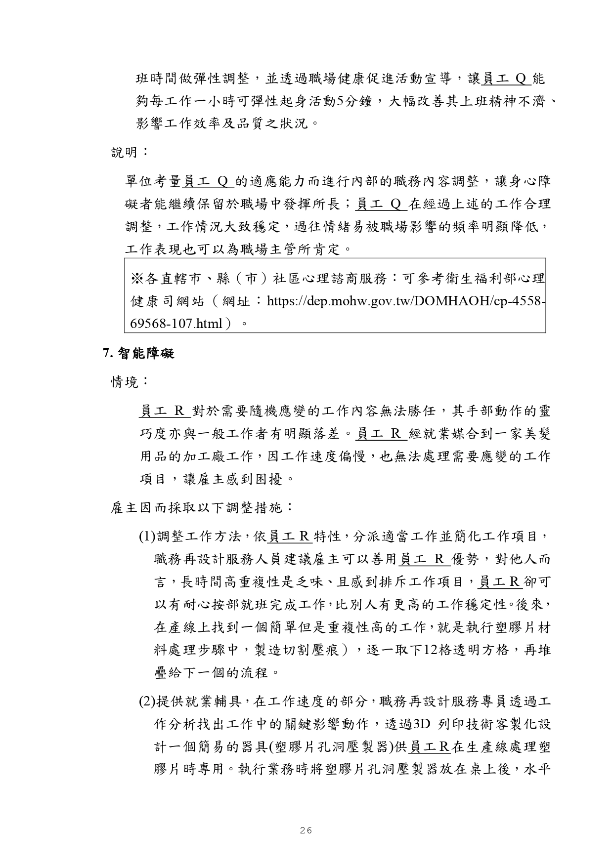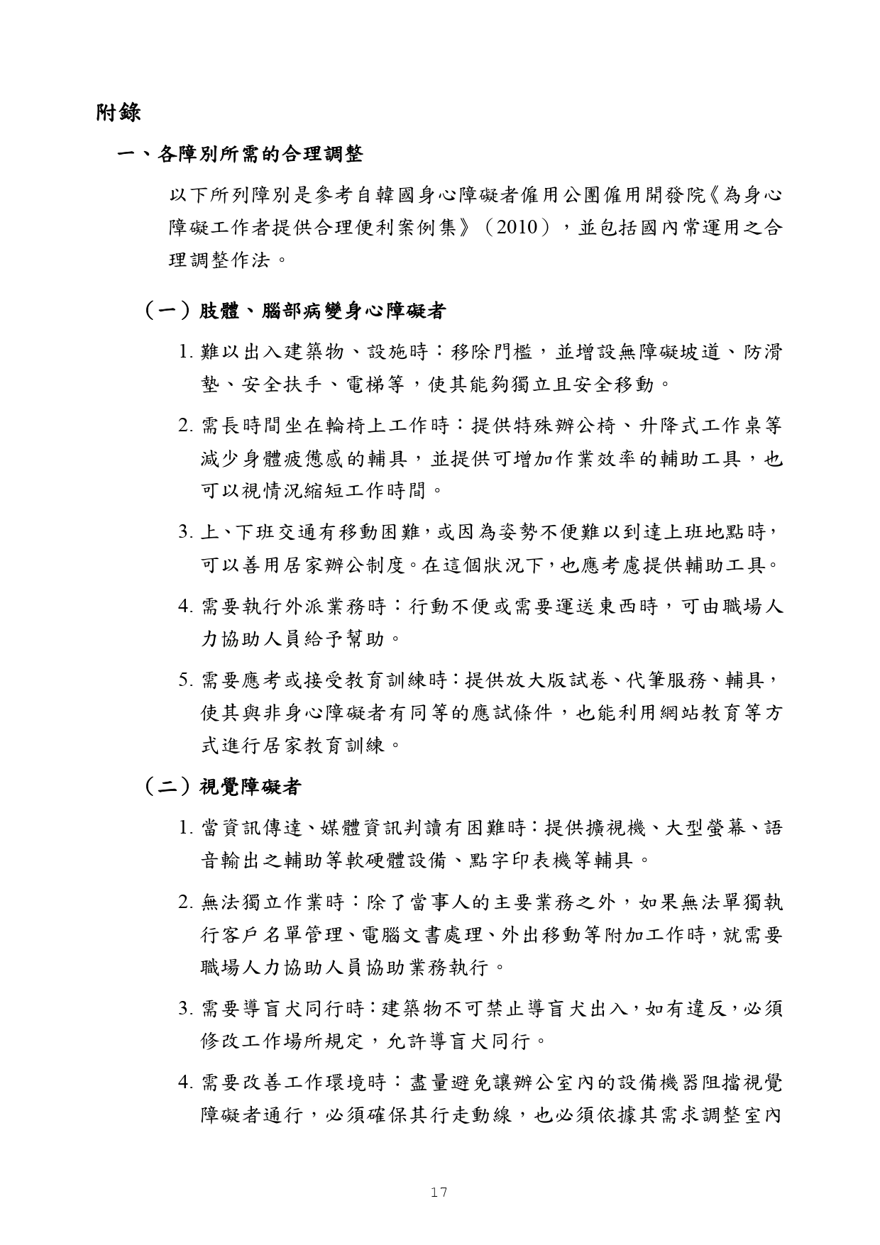 勞動部訂頒之「身心障礙者職場合理調整行政指導及常見問答」手冊