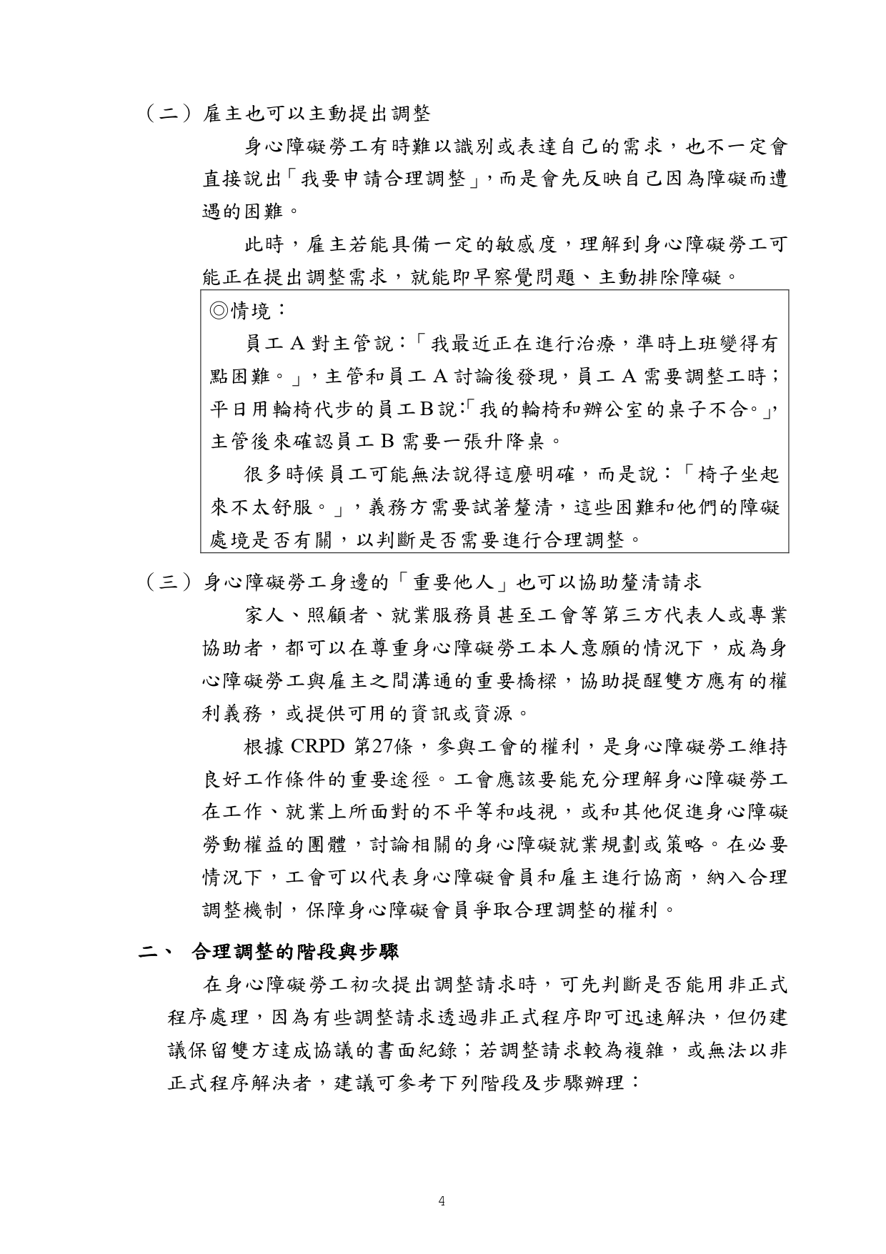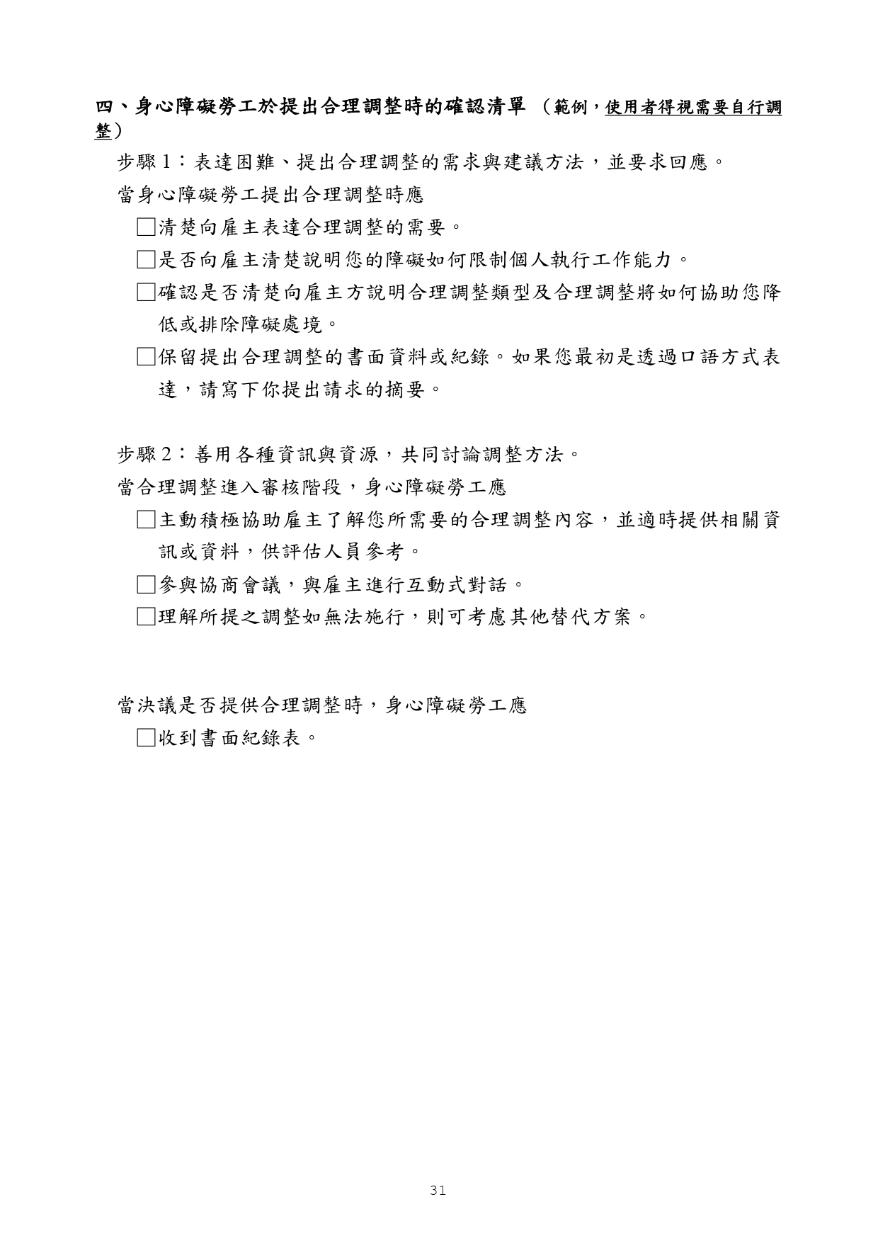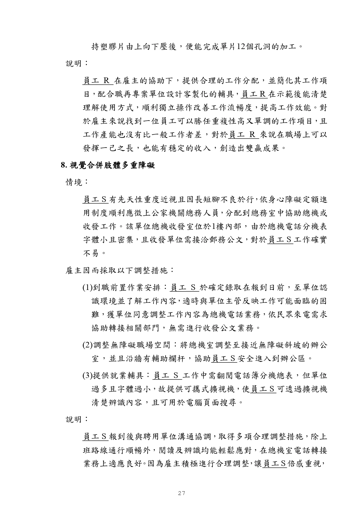 勞動部訂頒之「身心障礙者職場合理調整行政指導及常見問答」手冊