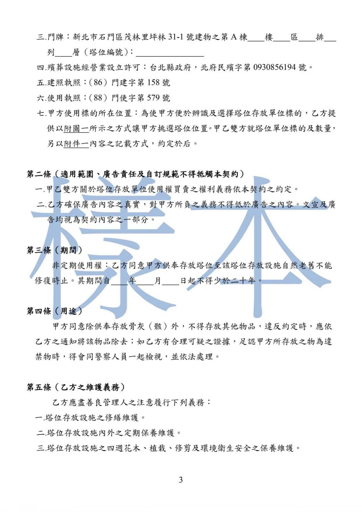 - 核准文號:台北縣政府,北府民殯字第0940360865號。