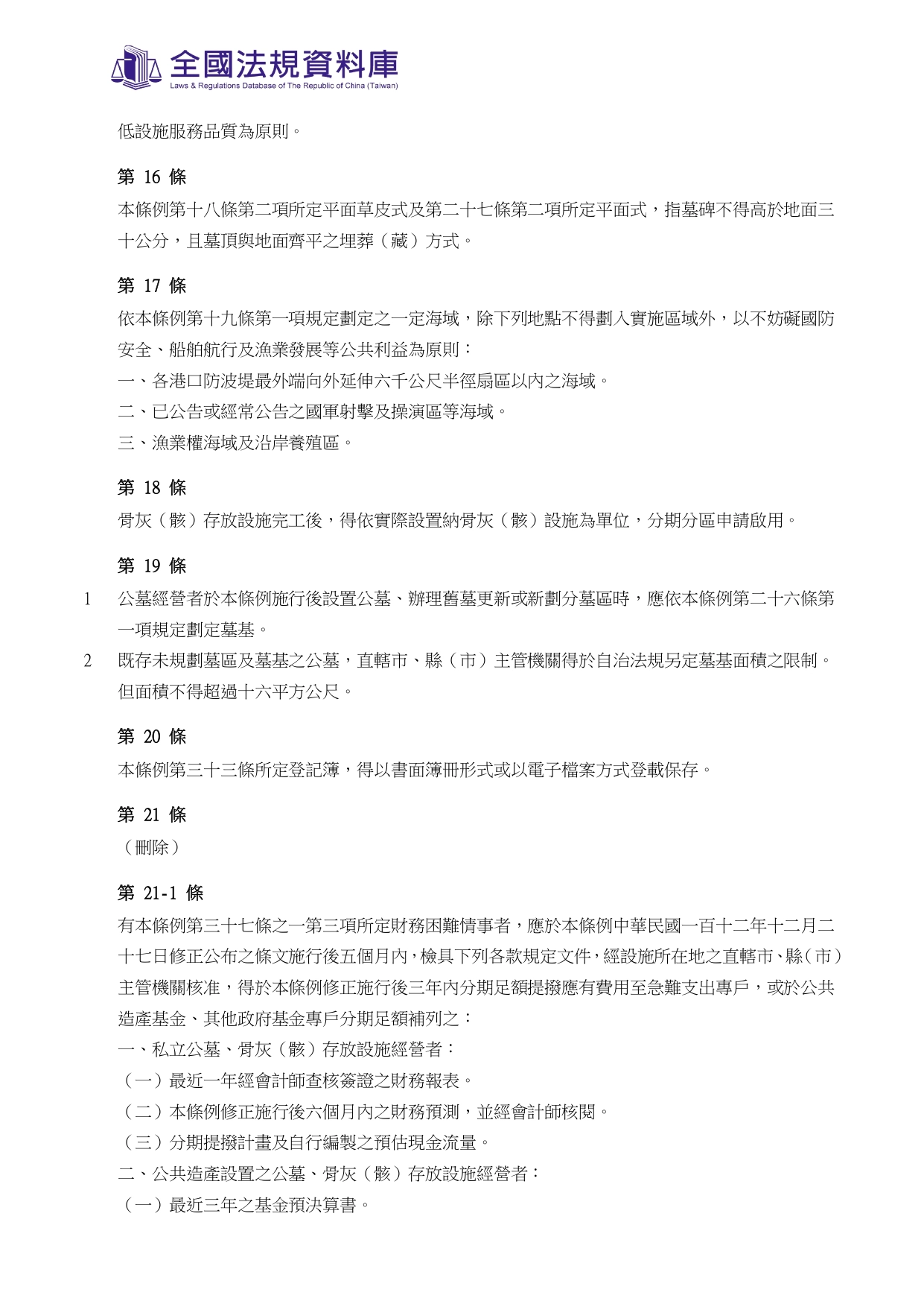 殯葬管理條例第四十五條第一項一定規模