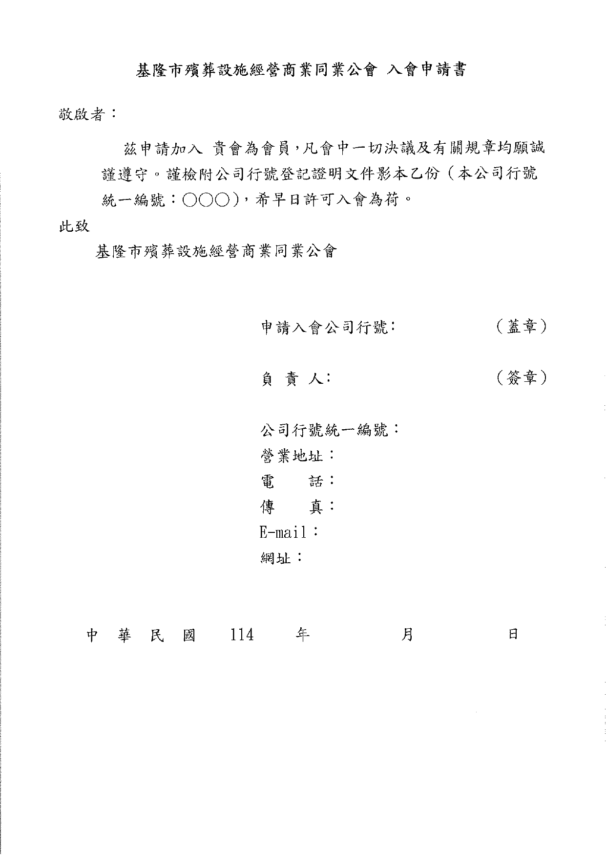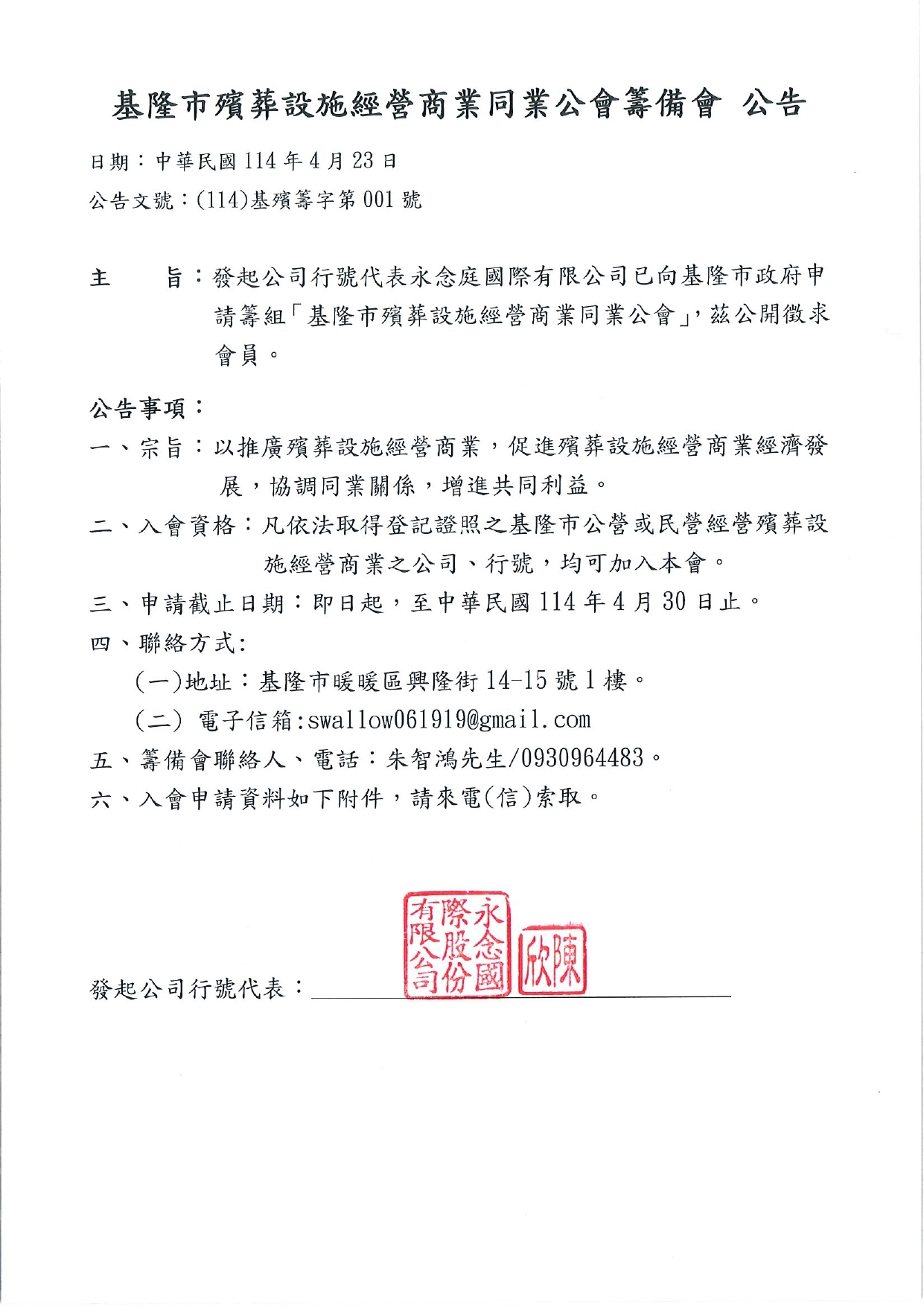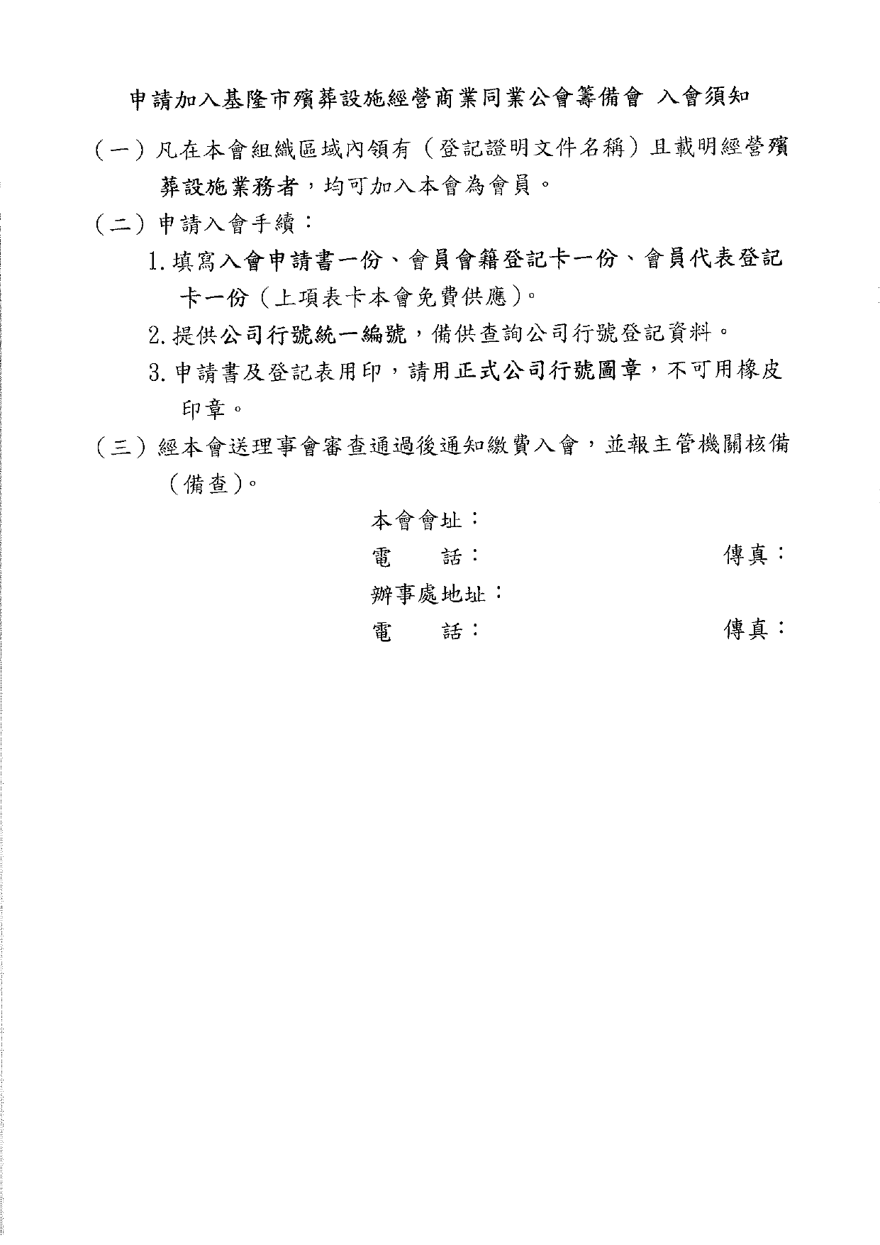 基隆市殯葬設施經營商業同業公會籌備會公告
