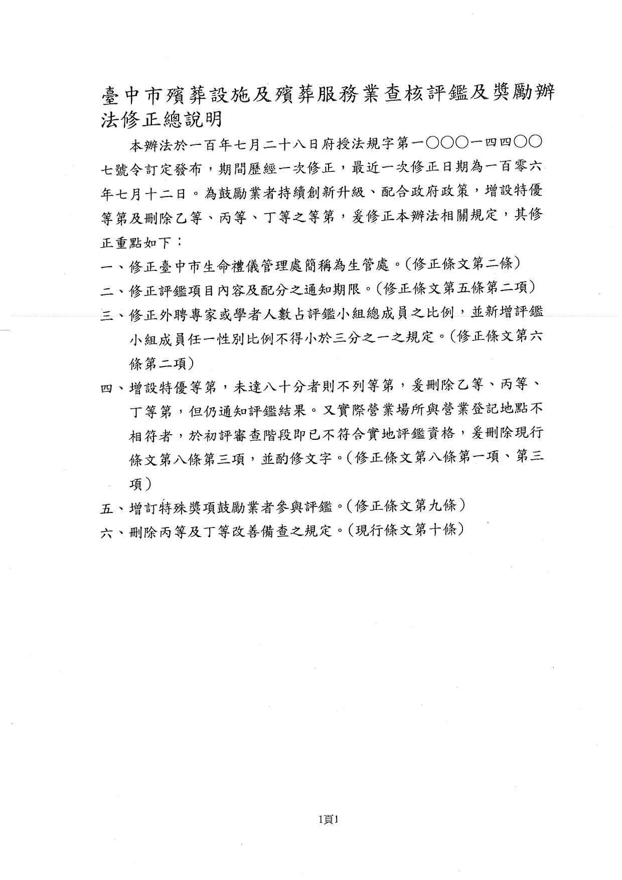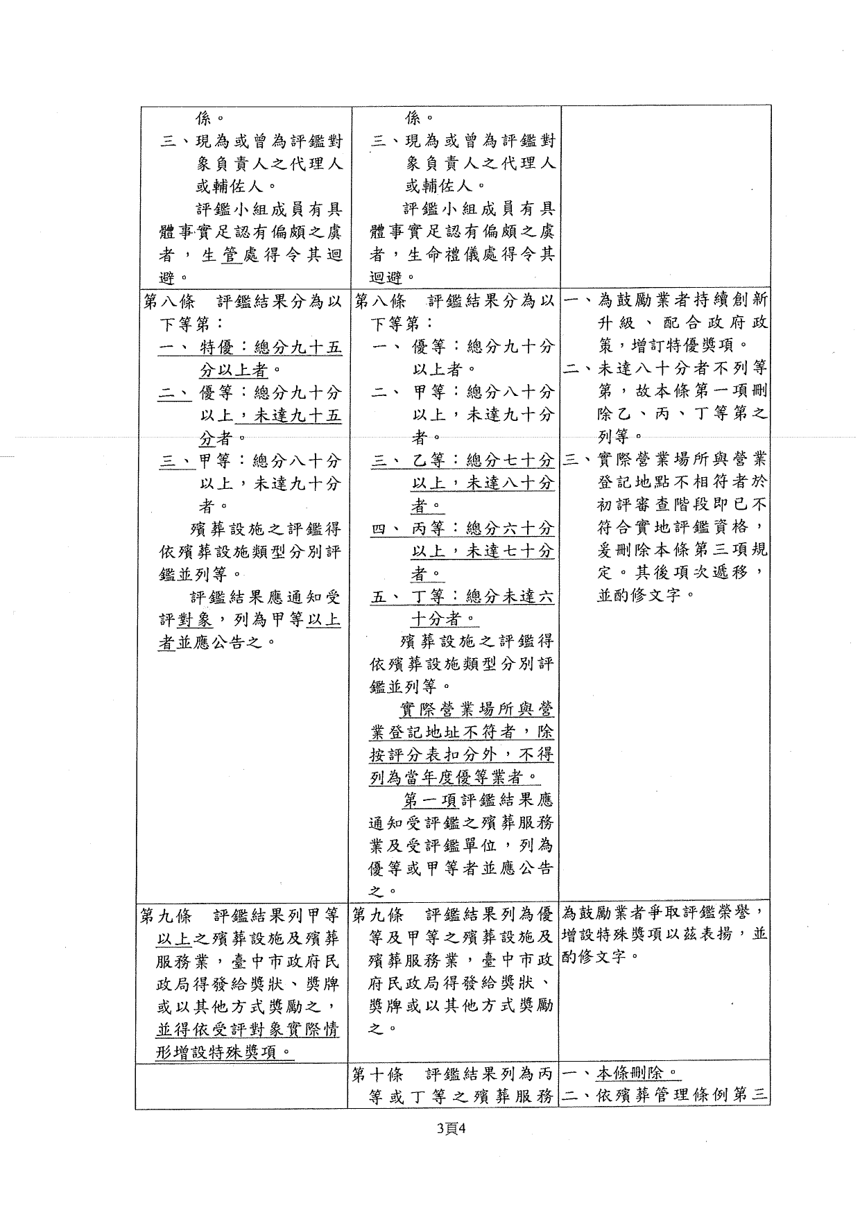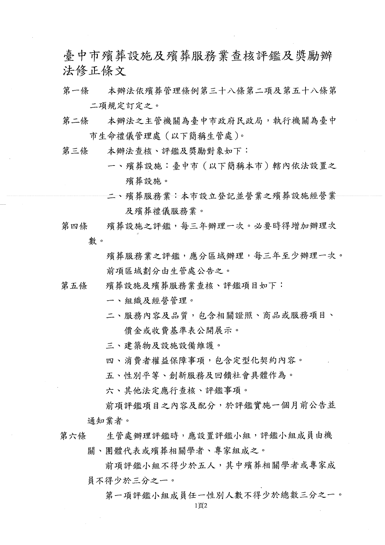 「臺中市殯葬設施及殯葬服務業查核評鑑及獎懲辦法」修正案