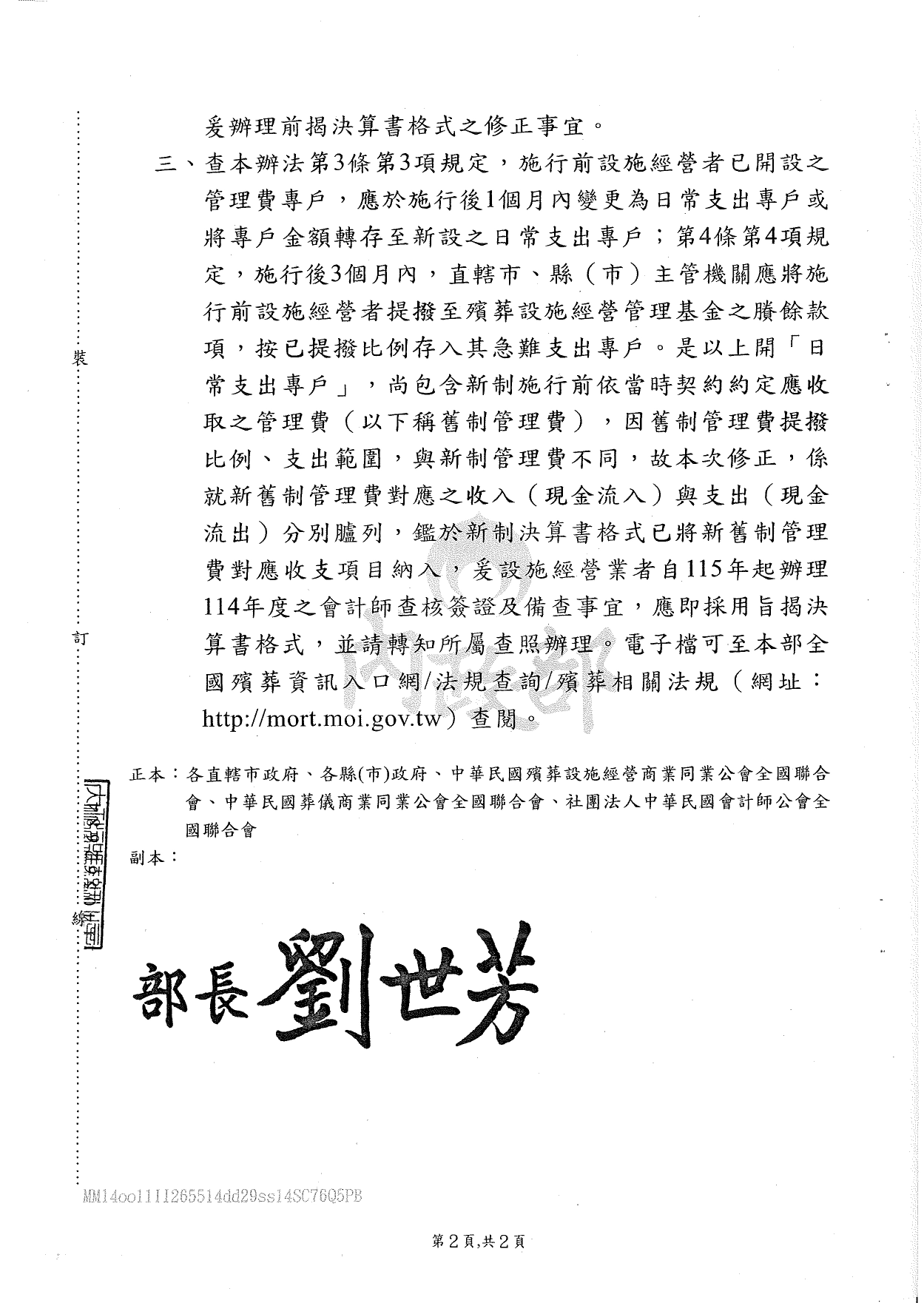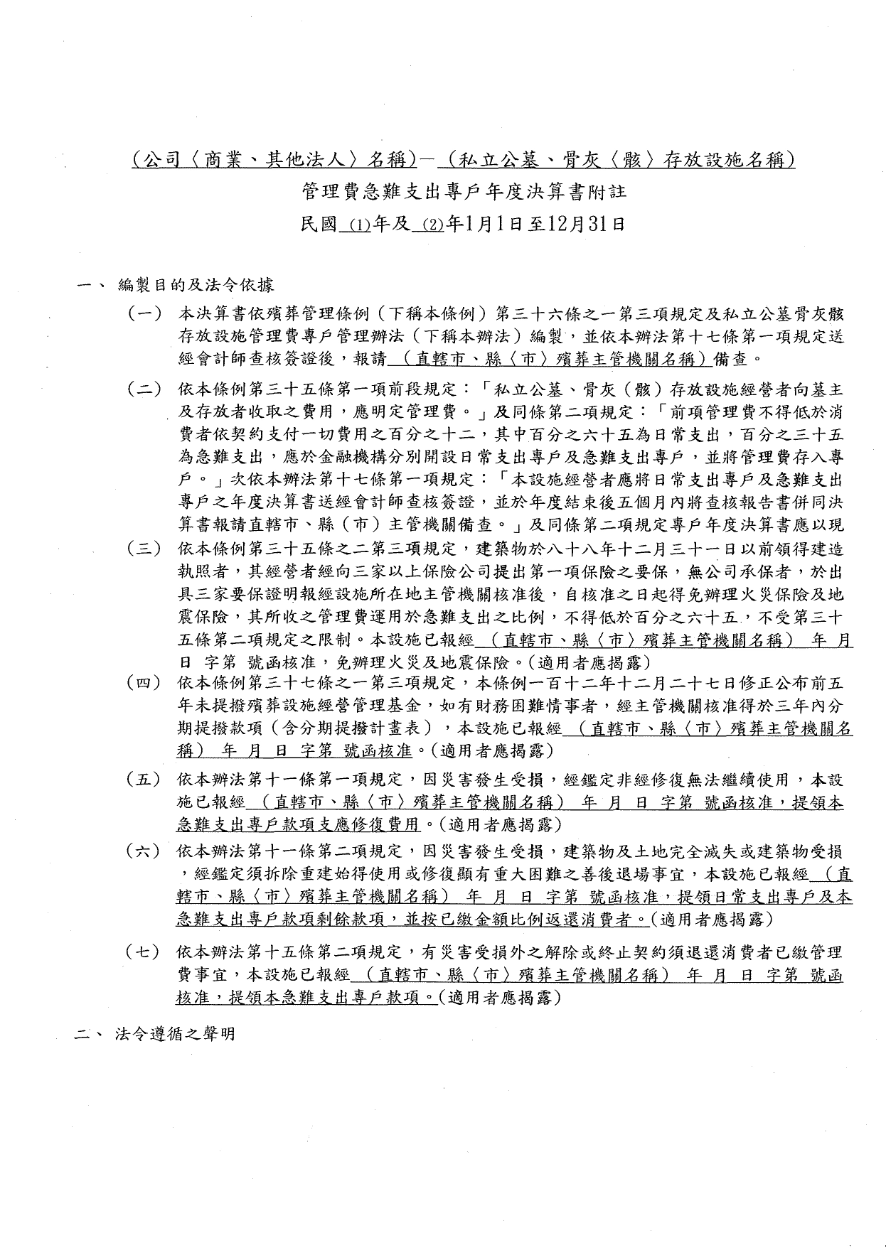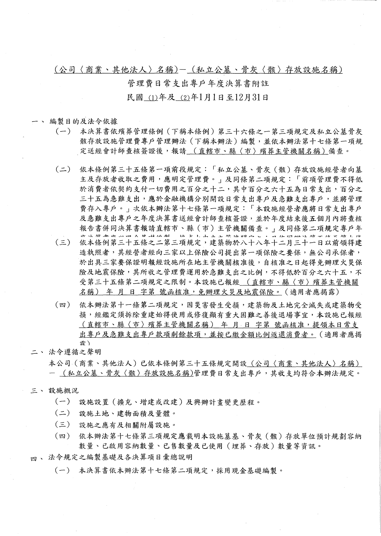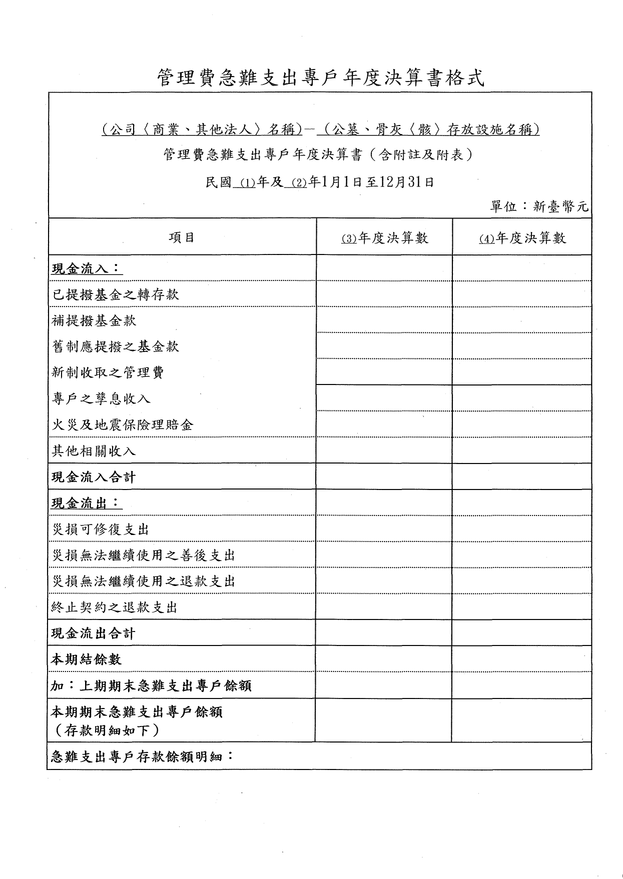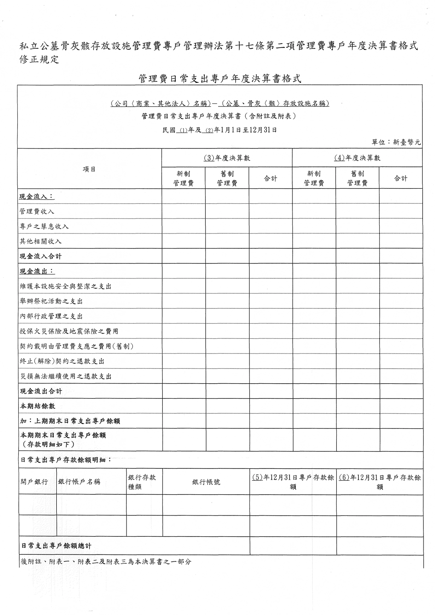 內政部有關修正「私立公墓骨灰骸存放設施管理費專戶管理辦法」相關事宜