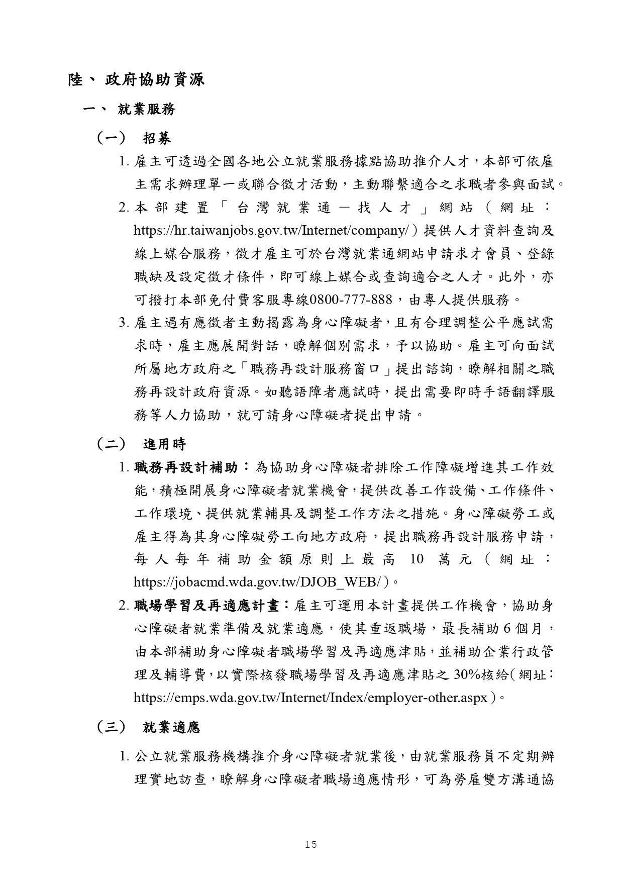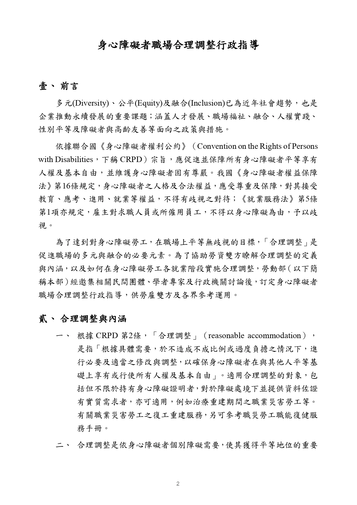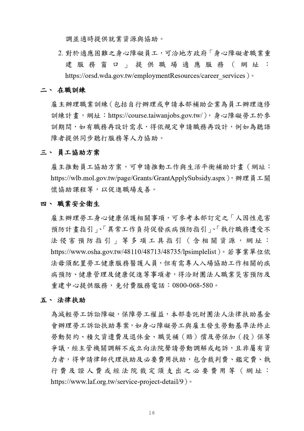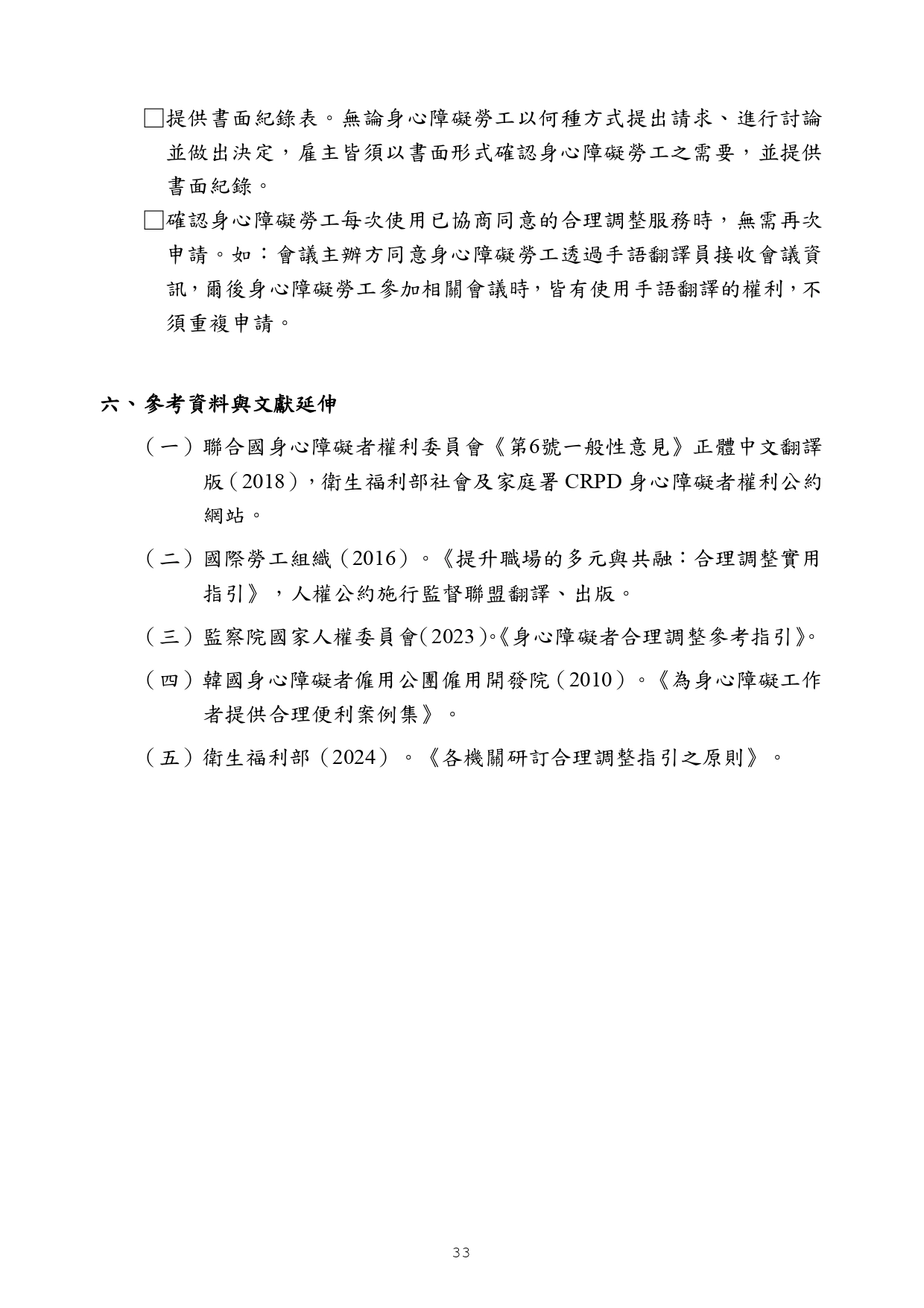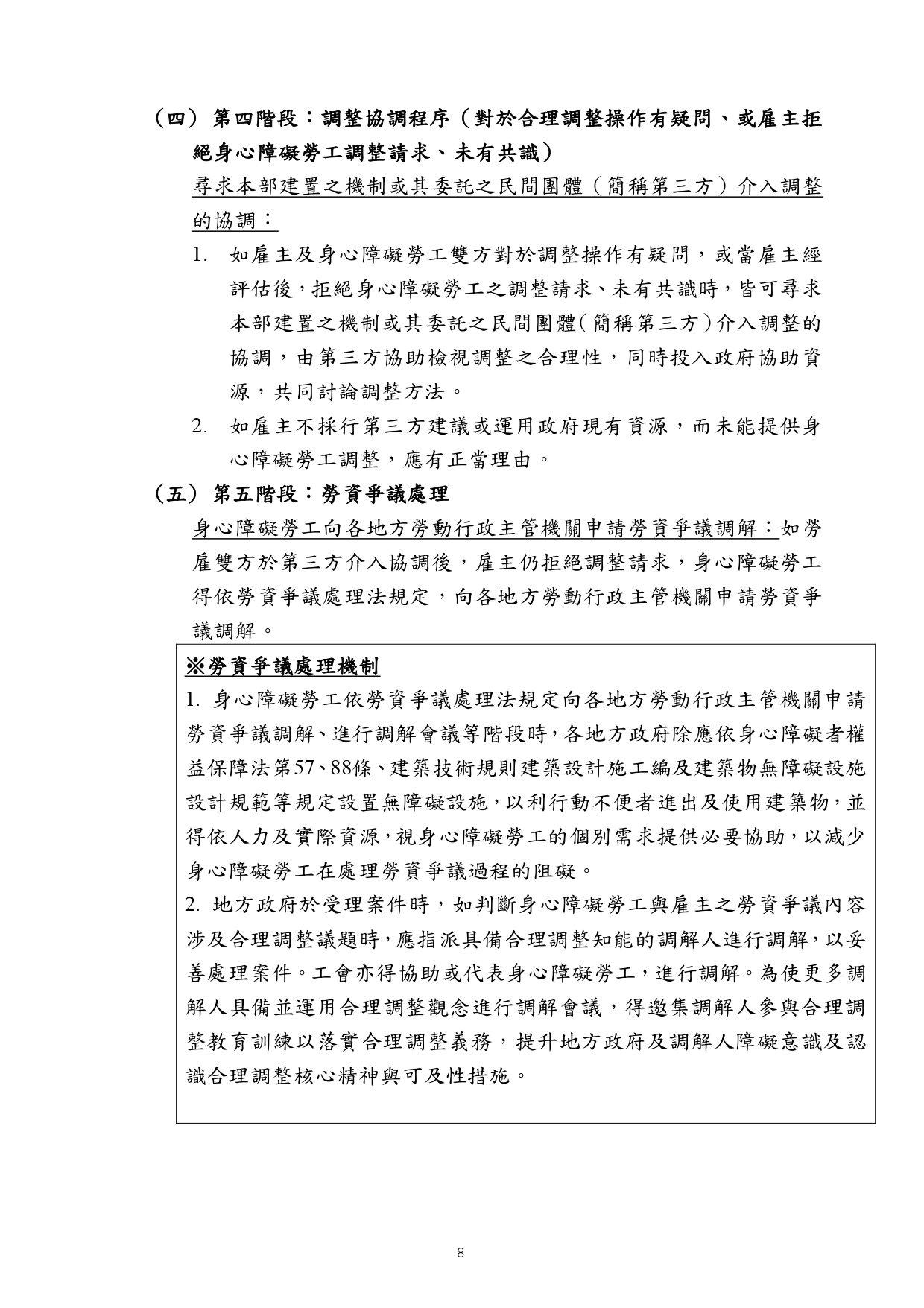 勞動部訂頒之「身心障礙者職場合理調整行政指導及常見問答」手冊