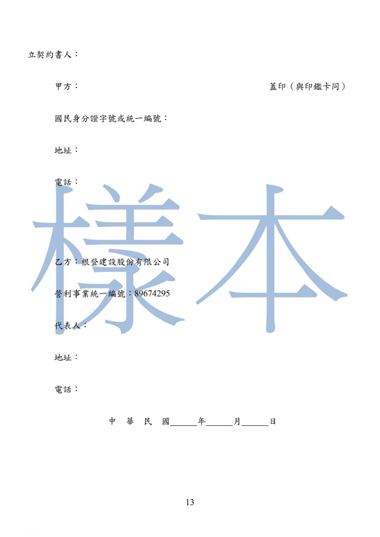 - 公司名稱:根登建設股份有限公司