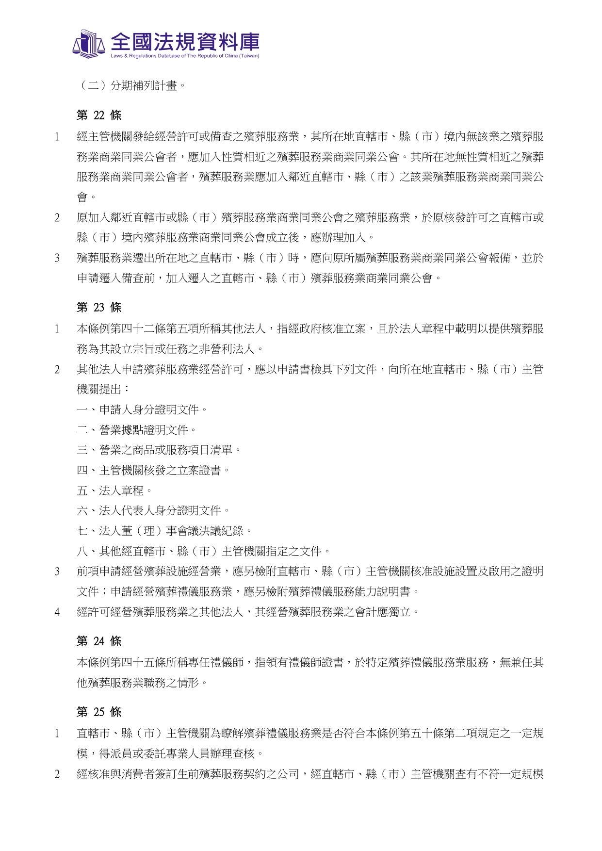 殯葬管理條例第22條第3項之應備文件