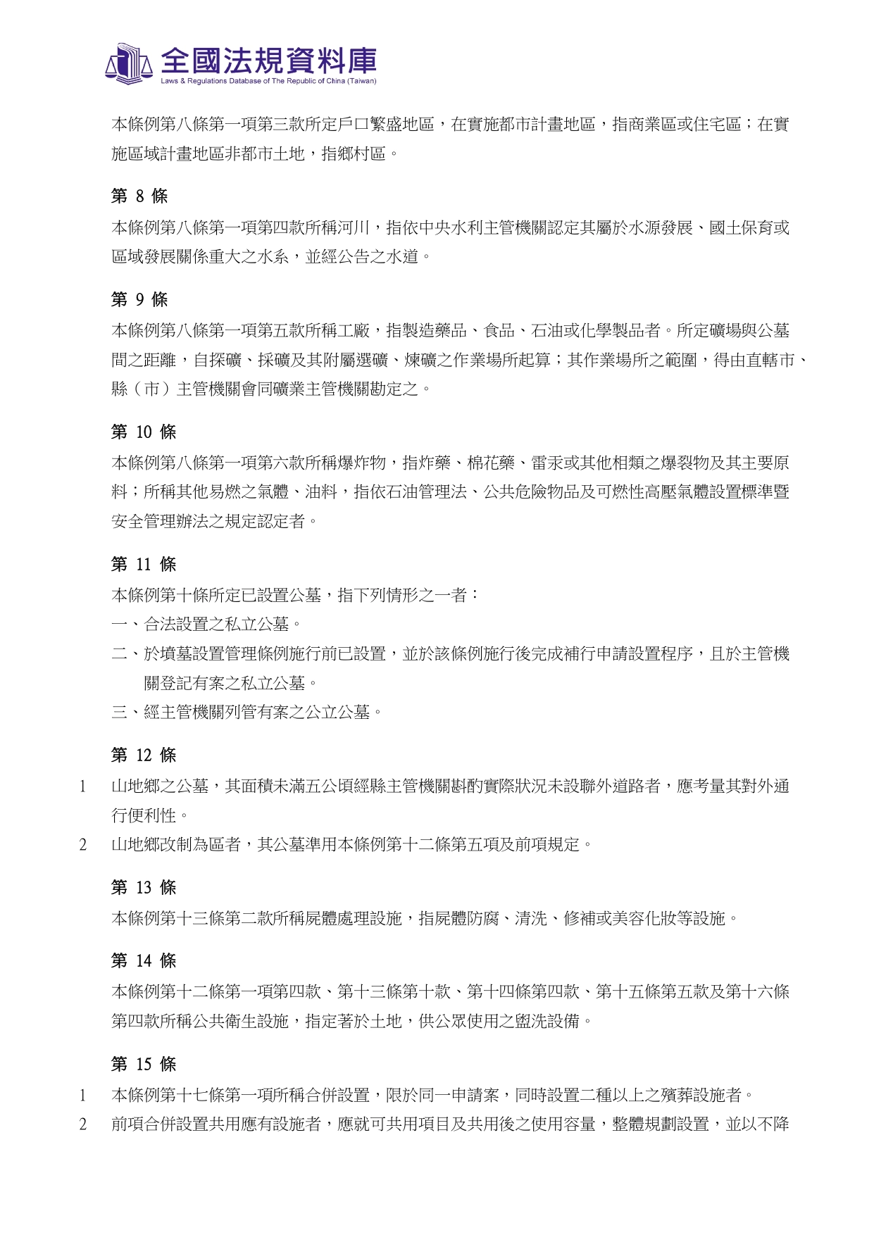 殯葬管理條例第四十五條第一項一定規模